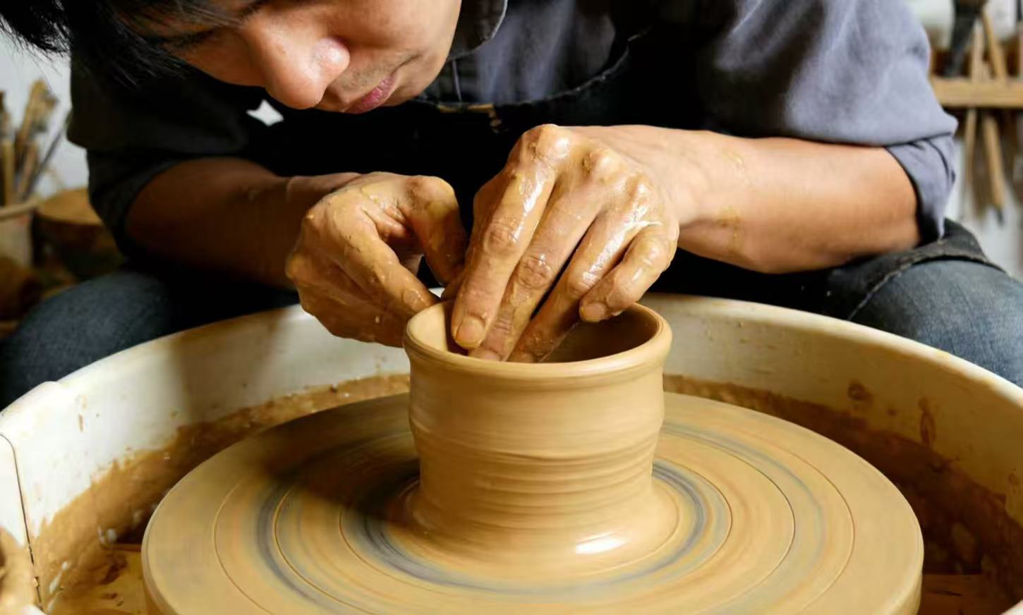 After being carefully shaped by hand, this lump of clay has been skillfully crafted into an elegant art cup.