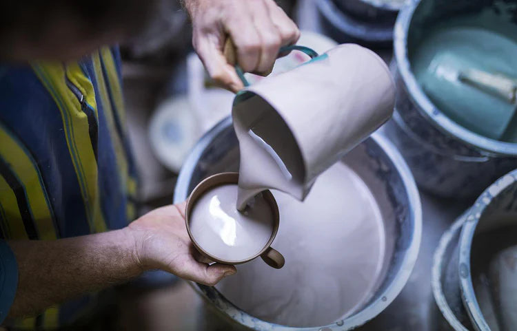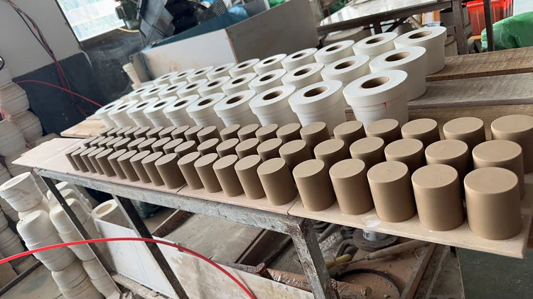 Each cup is carefully shaped by skilled artisans using traditional hand-throwing techniques. Artisans place a lump of clay onto a pottery wheel and shape it gently by hand, forming the cup with precision and care. Every piece is uniquely formed, giving it an authentic, artisanal character.
