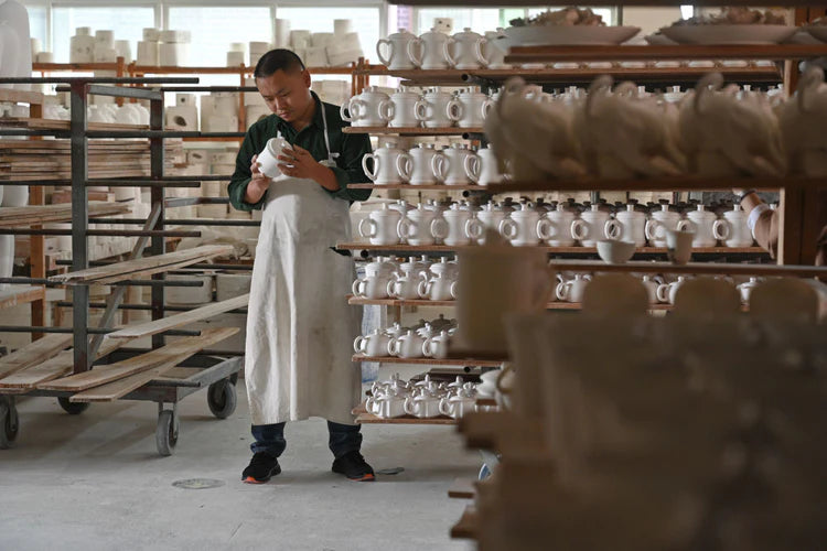 These finished teapots are ready to be put into the kiln and fired at a high temperature of 1350 degrees Celsius. This can make ceramics become healthier.